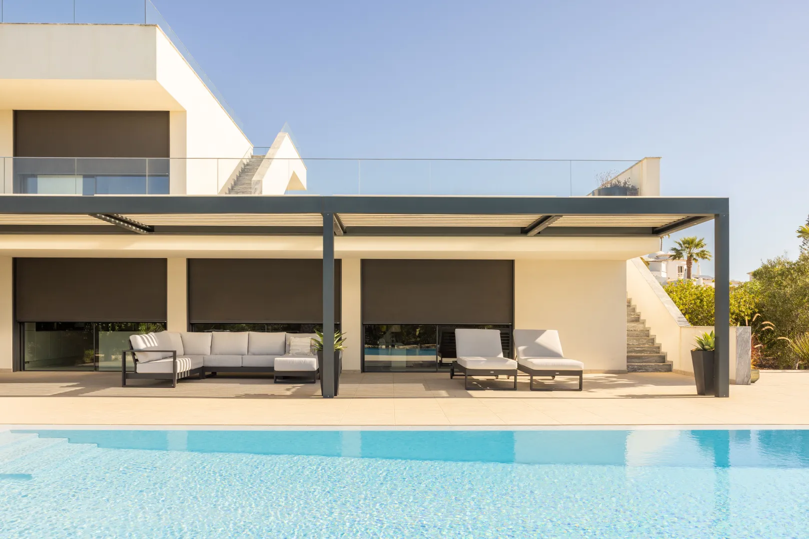 Entdecken Sie hier ROMA Referenzobjekte, die eindrucksvoll den Einsatz moderner und stilvoller Sicht- und Sonnenschutzlösungen präsentieren. Lassen Sie sich von inspirierenden Beispielen begeistern und finden Sie die perfekte Ausstattung für Ihr Zuhause – mit ROMA Rollladen, Raffstoren oder Textilscreens.